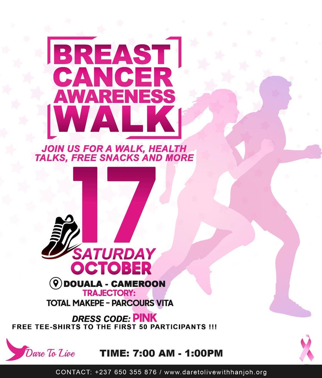 Total Makepe - Douala Cameroon Total Makepe, Douala, LittoralDouala, you are next! Let’s do it big with a WALK Saturday, October 17th, 2020- 7 am Prompt! We walk to create awareness on the dreaded disease breast cancer! We walk for our mothers, sisters, and aunties. Let’s do this Join us for a walk, health talks, free snacks, and more. 50 free t-shirts to […]